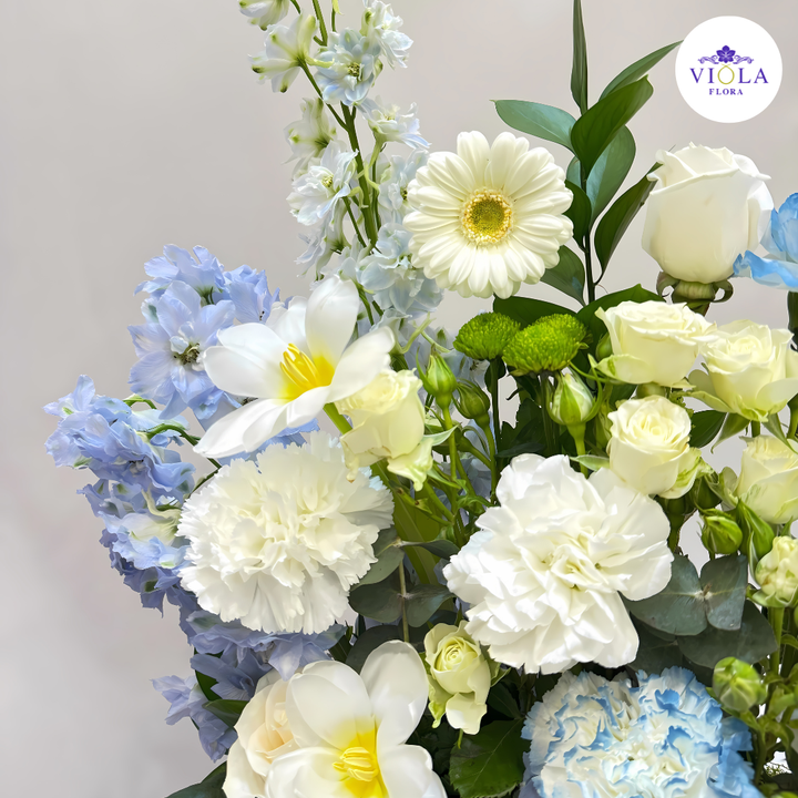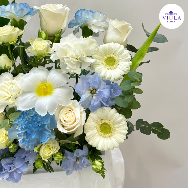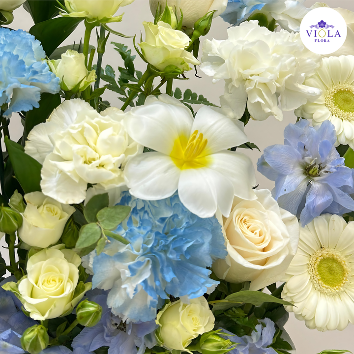 A dreamy blend of blue and white blooms that radiate peace and sophistication — perfect for brightening your living space or gifting someone special 💐✨ Elegant, timeless, and full of charm. 🌸